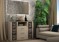 Исполняется в цвете: Ясень Шимо светлый. Кромка ПВХ 0,4. Фасады МДФ с 3D вставками 'Цветы'